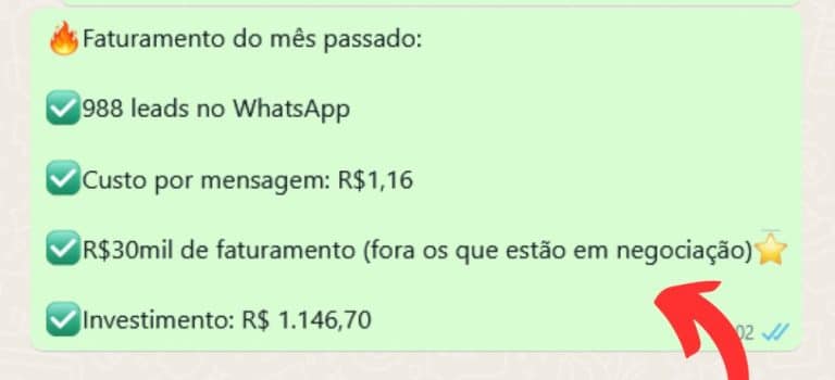 Nesta empresa, foram 20mil reais investidos para um faturamento de 300mil reais! Veja abaixo: